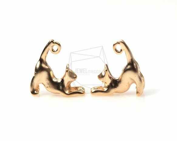 PDT-354-MG/4Pcs-cat pendant / 15mm x 16mm /Matte Gold Plated over pewter