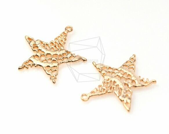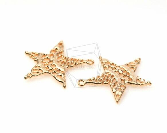 PDT-355-MG/2Pcs-lace star Pendant/ 25mm x 25mm/ Matte Gold Plated Over Brass