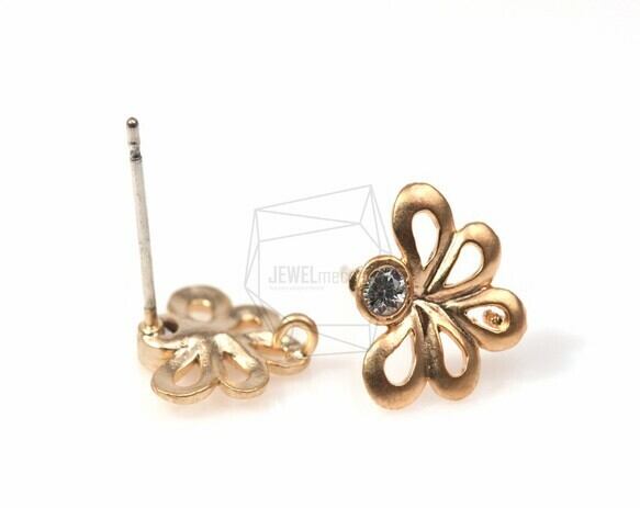 ERG-060-MG/4Pcs-Cubic Zirconia Setting Ear Post/ 10mm x 12mm /Matte Gold Plated over Brass/925 sterling silver post