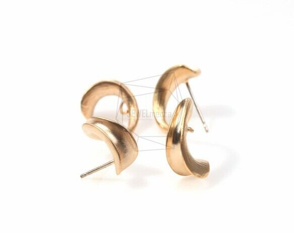 ERG-061-MG/2Pcs-wave Ear Post/ 13mm x 30mm /Matte Gold Plated over Brass/925 sterling silver post