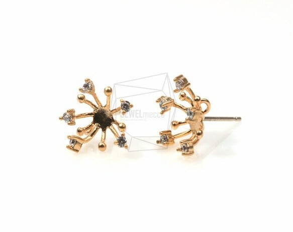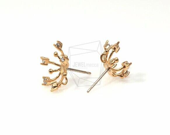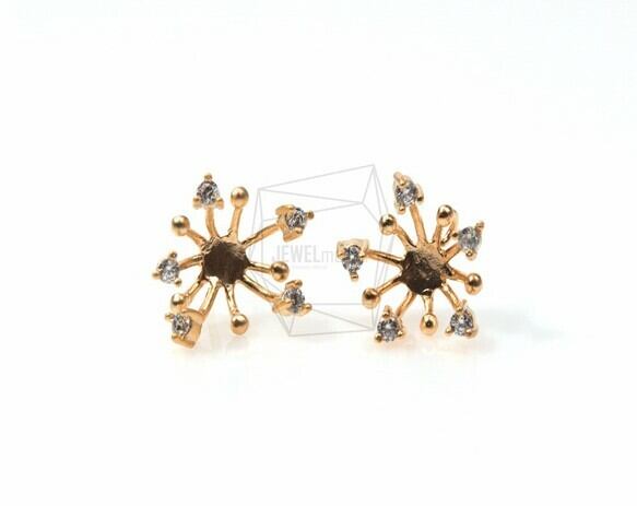 ERG-065-MG/2Pcs-Cubic Zirconia Setting flower Ear Post/ 13mm x 13mm /Matte Gold Plated over Brass/925 sterling silver post
