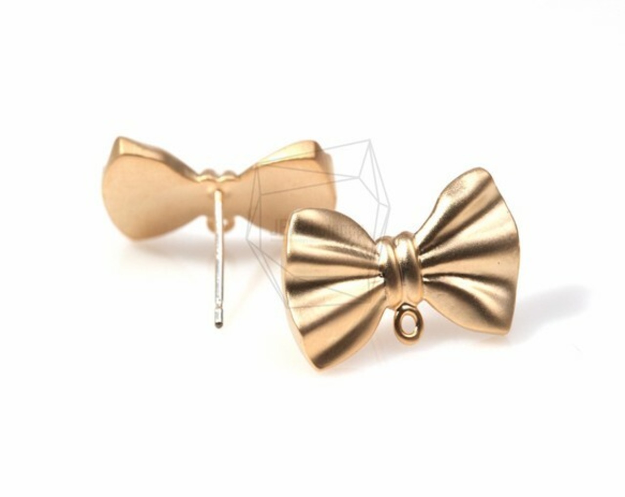 ERG-067-MG/4Pcs-ribbon Ear Post/ 11mm x 19mm /Matte Gold Plated over Brass/925 sterling silver post