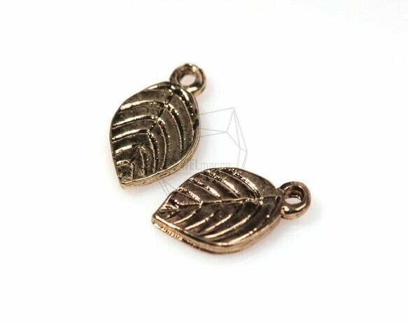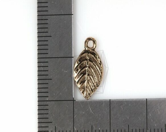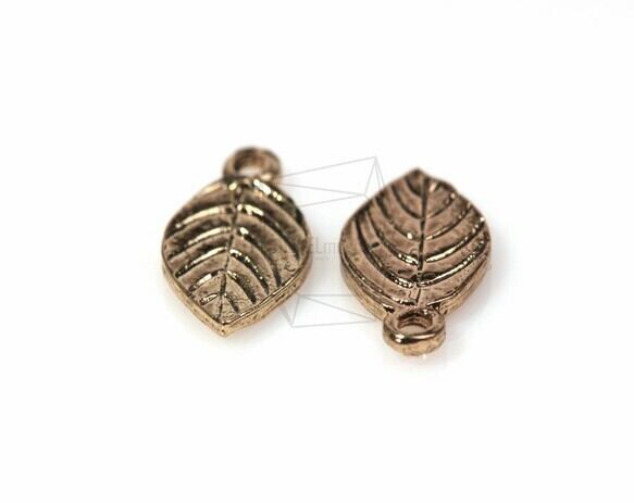 PDT-374-G/4Pcs-Leaf Pendant/ 8.5mm x 15mm/Antique gold Plated Over Brass