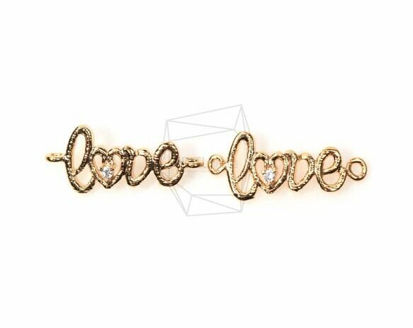 CNT-071-G/5Pcs-Cubic Zirconia Setting LOVE Pendant / 8mm x 22mm/Gold Plated over brass