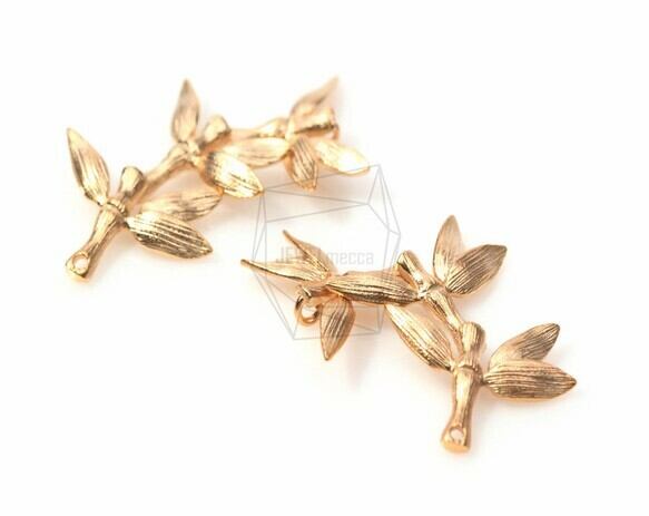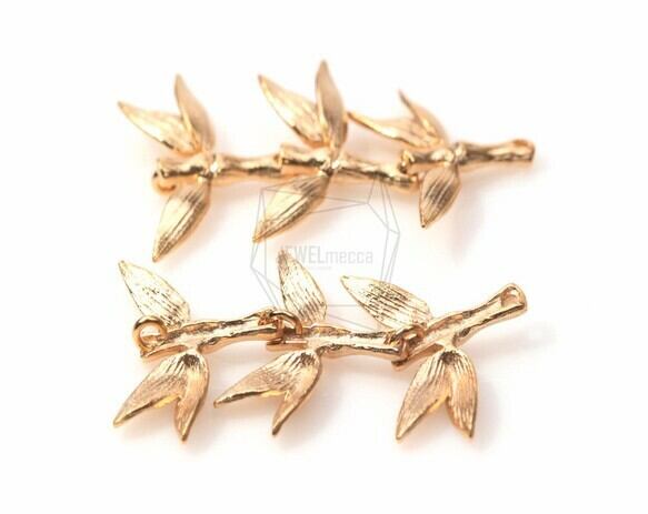 CNT-073-MG/2Pcs-Bamboo Pendant/ 19mm x 38mm/ Matte Gold Plated Over Brass
