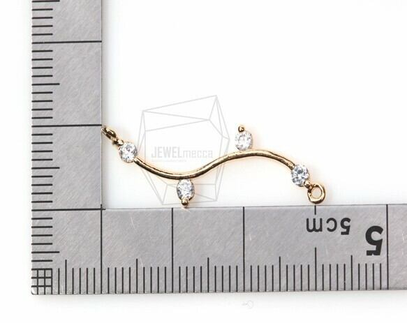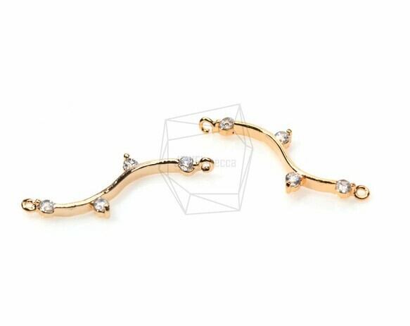 CNT-074-G/2Pcs-Cubic Zirconia Setting Wave Pendant / 10mm x 31mm/Gold Plated over brass