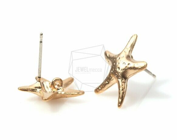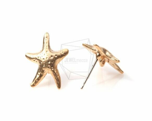 ERG-076-MG/4Pcs-starfish Ear Post/ 15mm x 15mm /Matte Gold Plated over Brass/925 sterling silver post