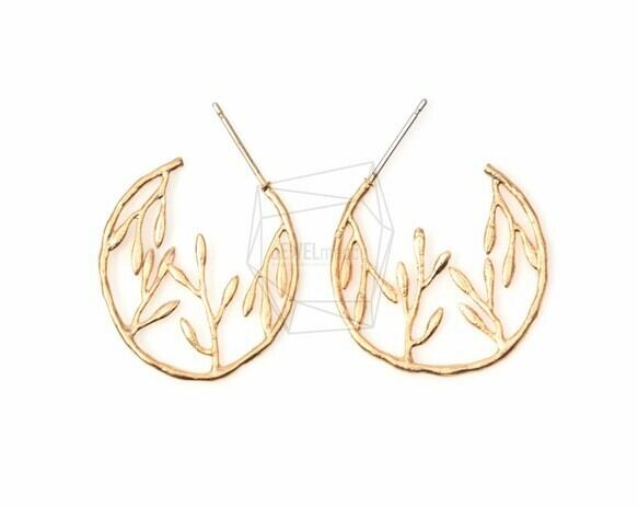ERG-078-MG/2Pcs-seaweed Ear Post/ 21mm x 27mm /Matte Gold Plated over Brass/925 sterling silver post