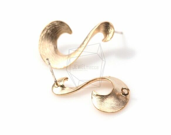 ERG-079-MG/2Pcs-wave Ear Post/ 14mm x 24mm /Matte Gold Plated over Brass/925 sterling silver post
