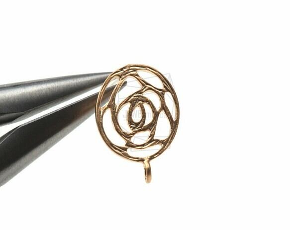 ERG-080-MG/2Pcs-rose Ear Post/ 12mm x 14mm /Matte Gold Plated over Brass/925 sterling silver post