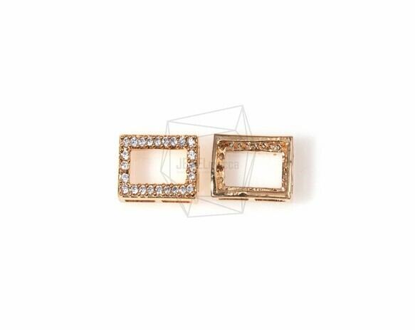 PDT-399-G/2Pcs-Cubic Zirconia Setting Rectangle pendant / 8mm x 10mm/Gold Plated over brass