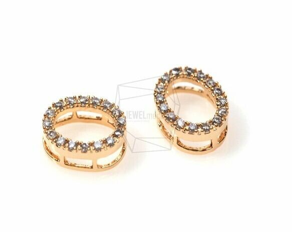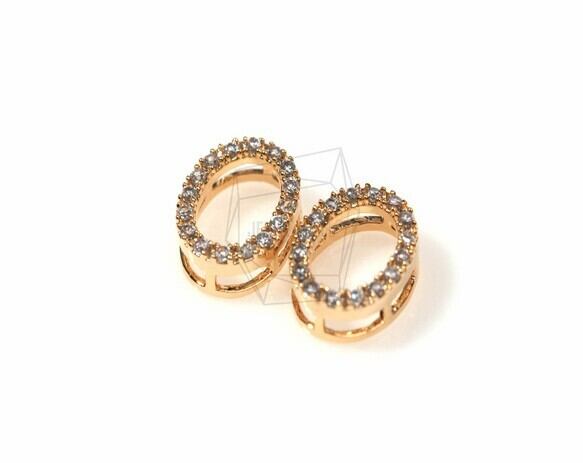 PDT-403-G/2Pcs-Cubic Zirconia Setting Oval pendant / 7mm x 9mm/Gold Plated over brass