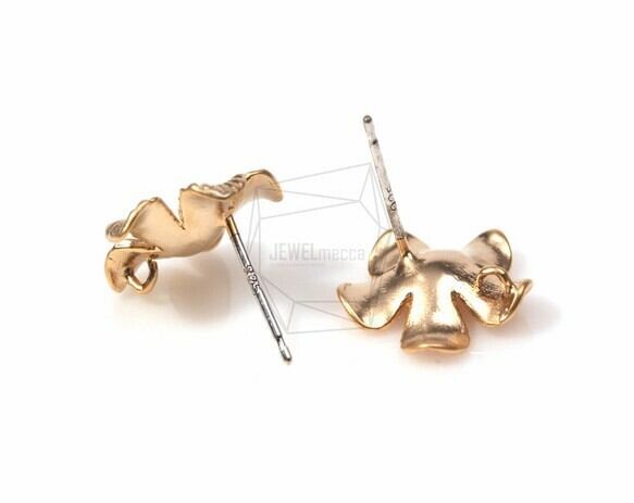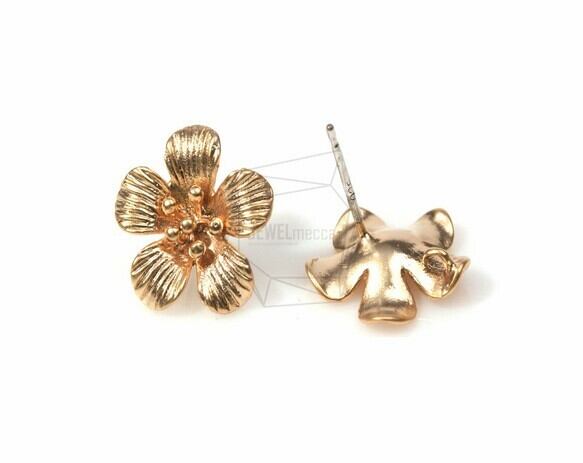 ERG-081-MG/2Pcs-Flower Ear Post/ 14mm x 14mm /Matte Gold Plated over Brass/925 sterling silver post