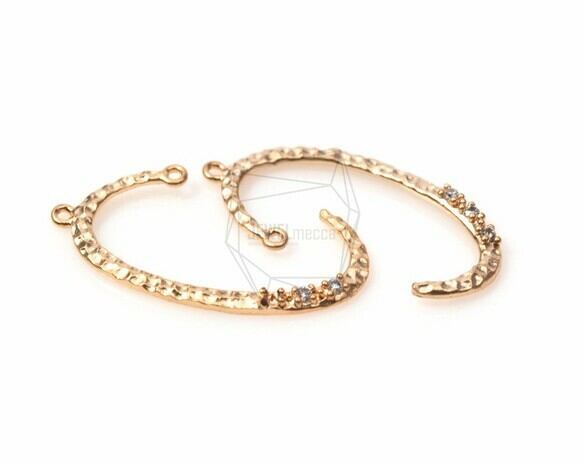 PDT-423-MG/2Pcs-Cubic Zirconia Setting C Shape pendant / 16mm x 31mm/Matte Gold Plated over brass