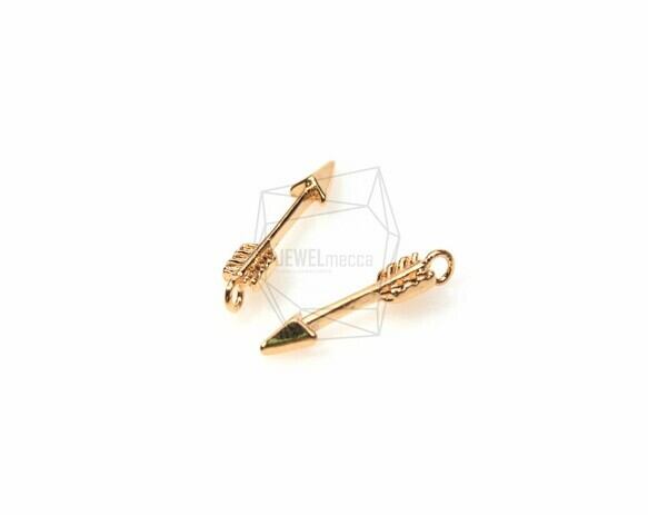 PDT-427-G/4Pcs-arrow Pendant/ 3mm x 15mm/ Gold plated Over Brass