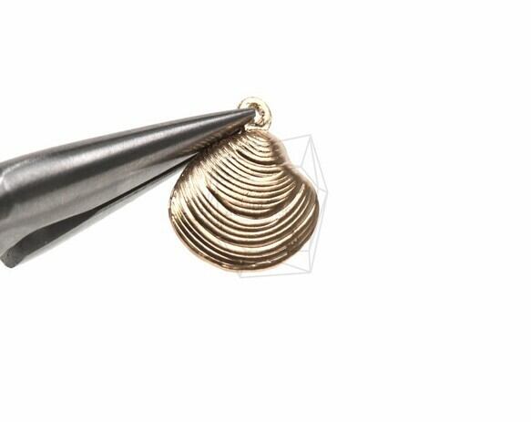 PDT-432-MG/4Pcs-Shell Charms, Clam Shell, Beach Charms/ 13mmx13mm /Matte Gold Plated over Tin