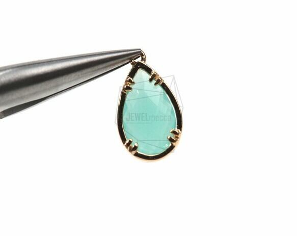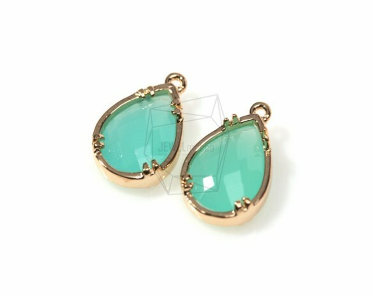 GLA-005-G/2Pcs-Drop Settings Pendant(Mint )/ 9mmx15mm /Gold Plated over Brass