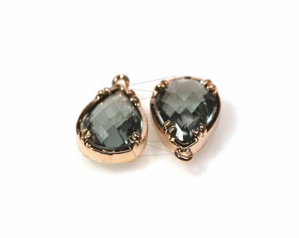 GLA-006-G/2Pcs-Drop Settings Pendant(Grey)/ 9mmx15mm /Gold Plated over Brass