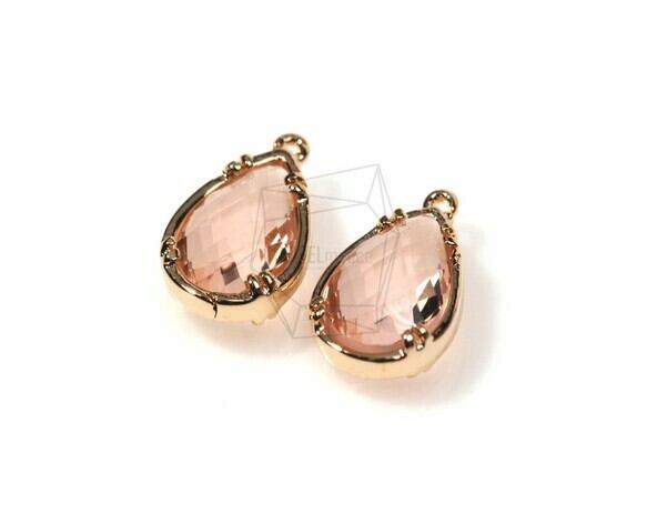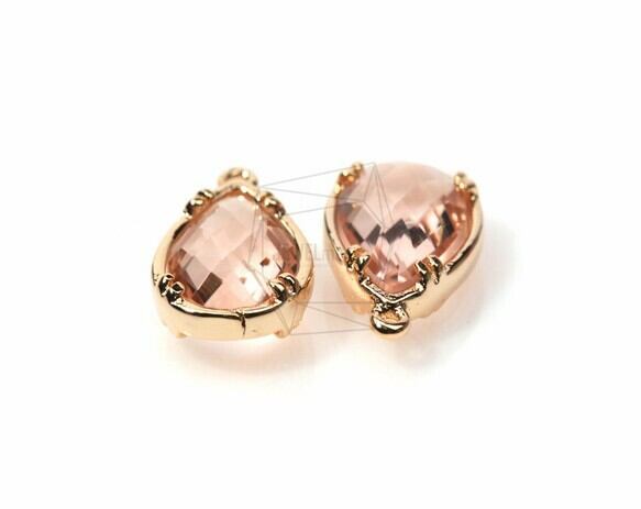 GLA-008-G/2Pcs-Drop Settings Pendant(Champagne)/ 9mmx15mm /Gold Plated over Brass