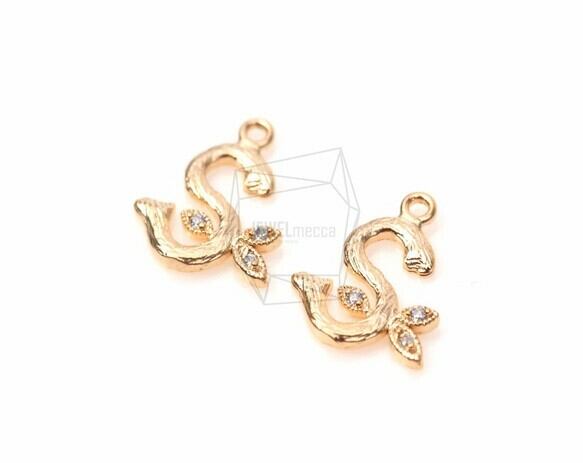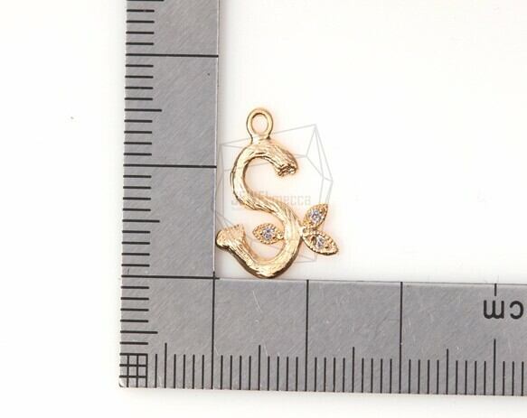 PDT-446S-MG/2Pcs-Cubic Zirconia Setting Initial S Pendant/11.5mmx14.5mm /Matte Gold Plated over brass