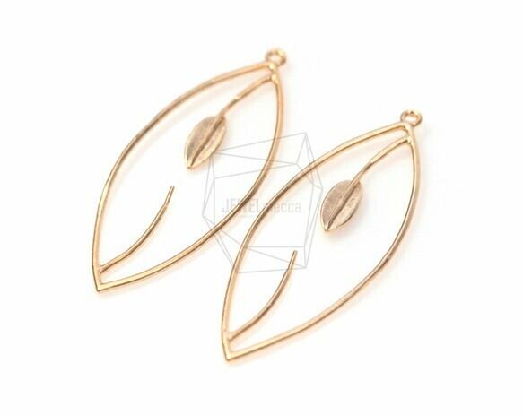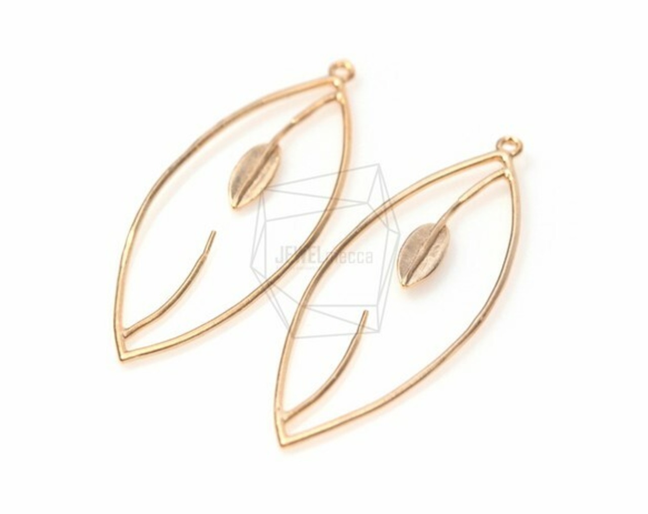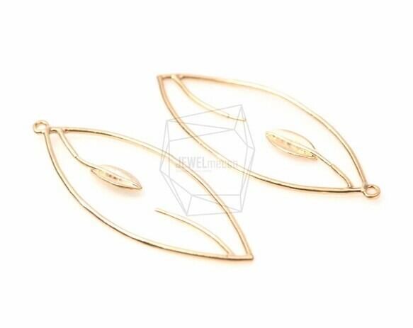 PDT-449-MG/2Pcs-boat Connector,leaf pendant/ 17mm x 44mm /Matte Gold Plated over brass