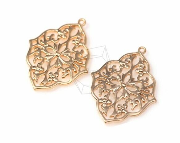PDT-465-MG/2Pcs-Paisley Pendant/ 27mm x 31mm/ Matte Gold Plated Over Brass