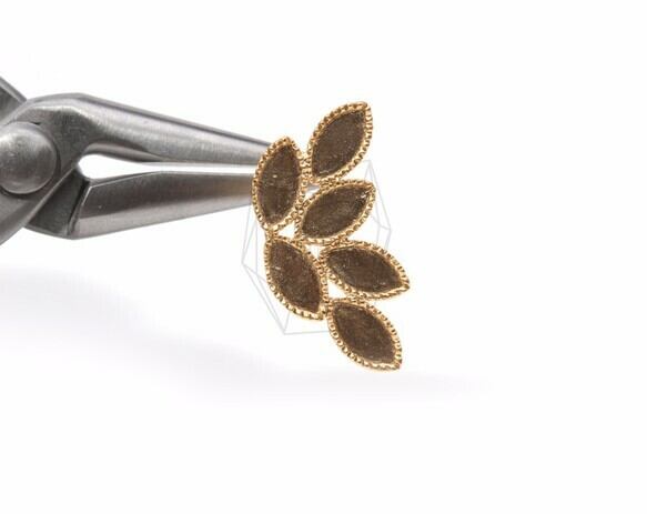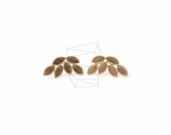 ERG-092-G/2Pcs-leaf Ear Post/ 13m x 24mm /Post Earring /Gold Plated over Brass/925 sterling silver post