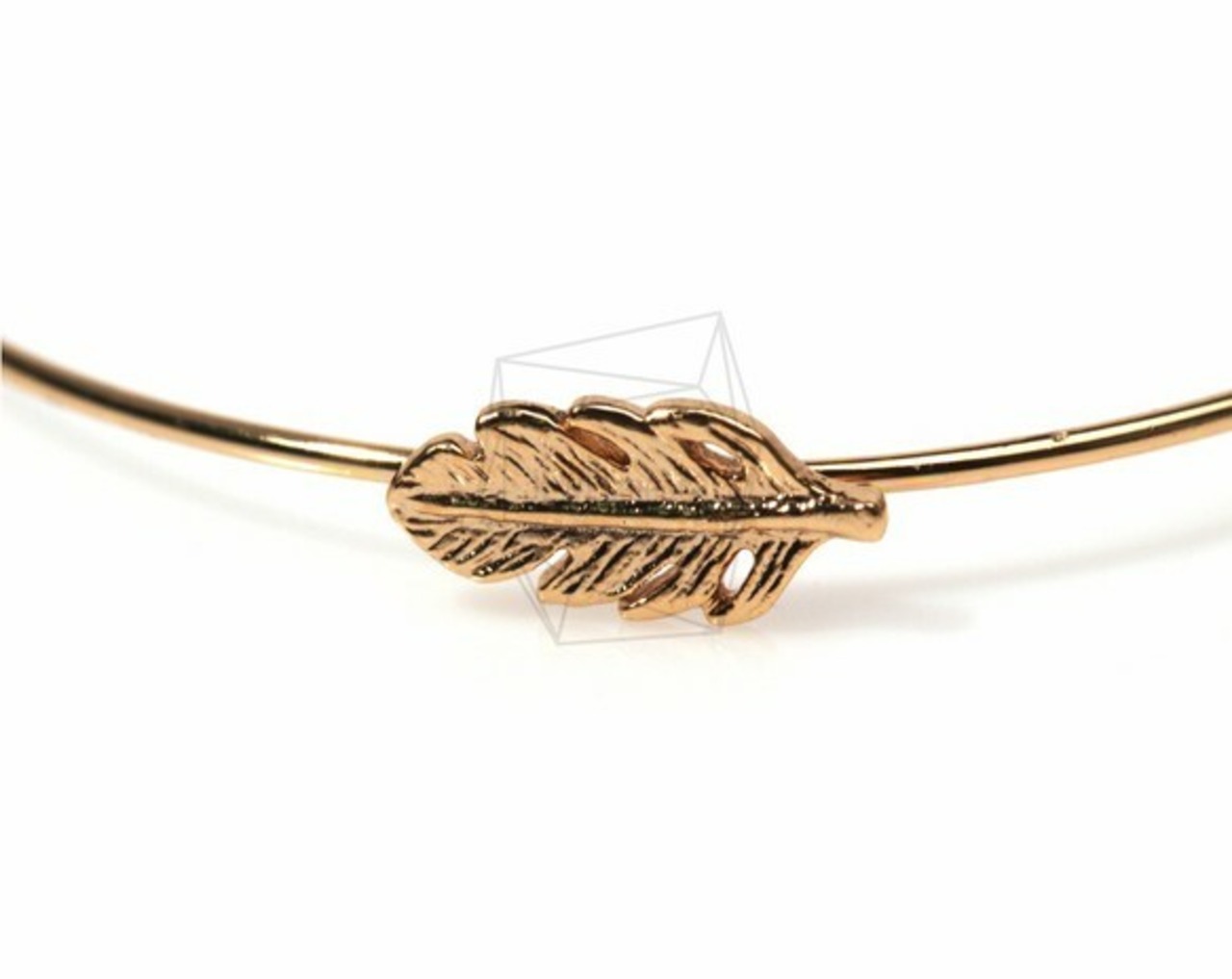 BRA-009-G/1Pcs-leaf Bracelet with hook and loop closure/Wire Bangle/0.8mm thickness/ Gold Plated over brass