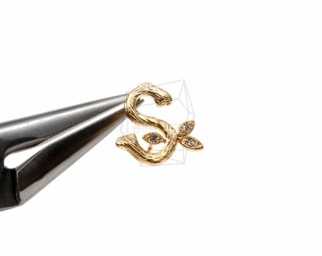ERG-095S-MG/2Pcs-Cubic Zirconia Setting Initial S Ear Post/ 11m x 11mm /Post Earring /Matte Gold Plated over Brass/925 sterling silver post