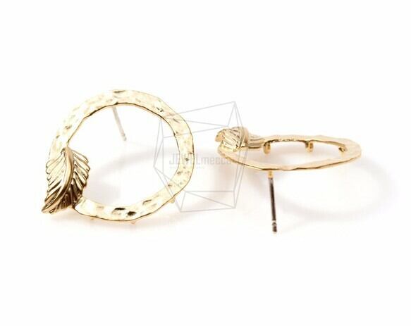 ERG-087-MG/2Pcs-Round wing Ear Post/ 22mm x 22mm /Matte Gold Plated over Brass/925 sterling silver post