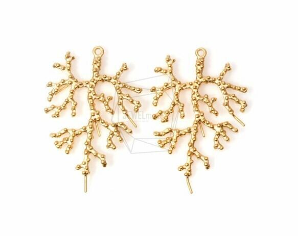 PDT-466-MG/2Pcs-Tree Pendant/ 30mm x 45mm/ Matte Gold Plated Over Brass