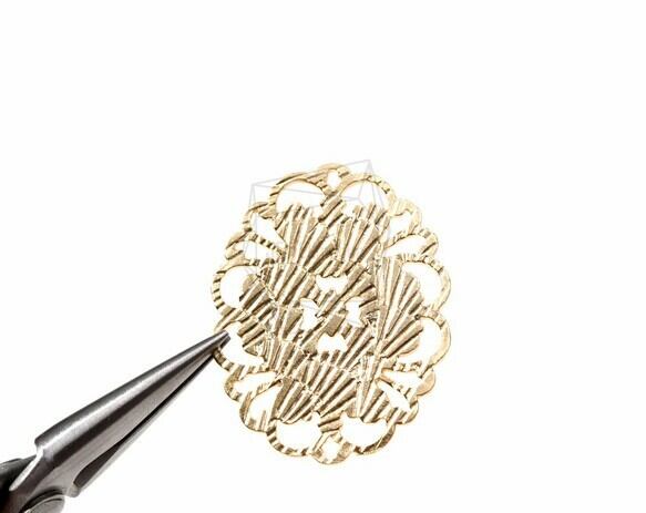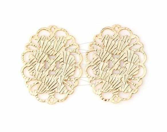 PDT-482-MG/2Pcs- Round pattern Pendant/ 26mm x 34mm/ Matte Gold Plated Over Brass