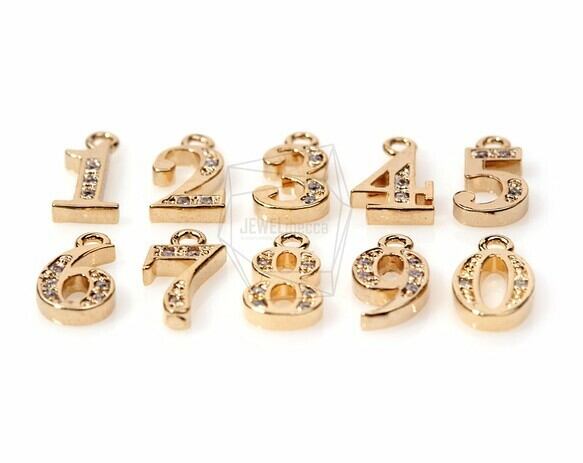 PDT-484-G【2個入り】キュービックジルコニアナンバー「1〜0」,CZ Number Pendant
