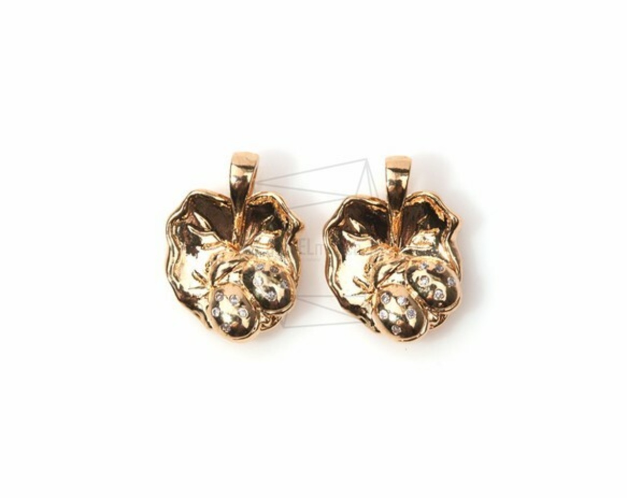 PDT-518-G/1Pcs- Cubic Zirconia Setting Flower Pendant/ 15mm X 18mm/Gold Plated over brass