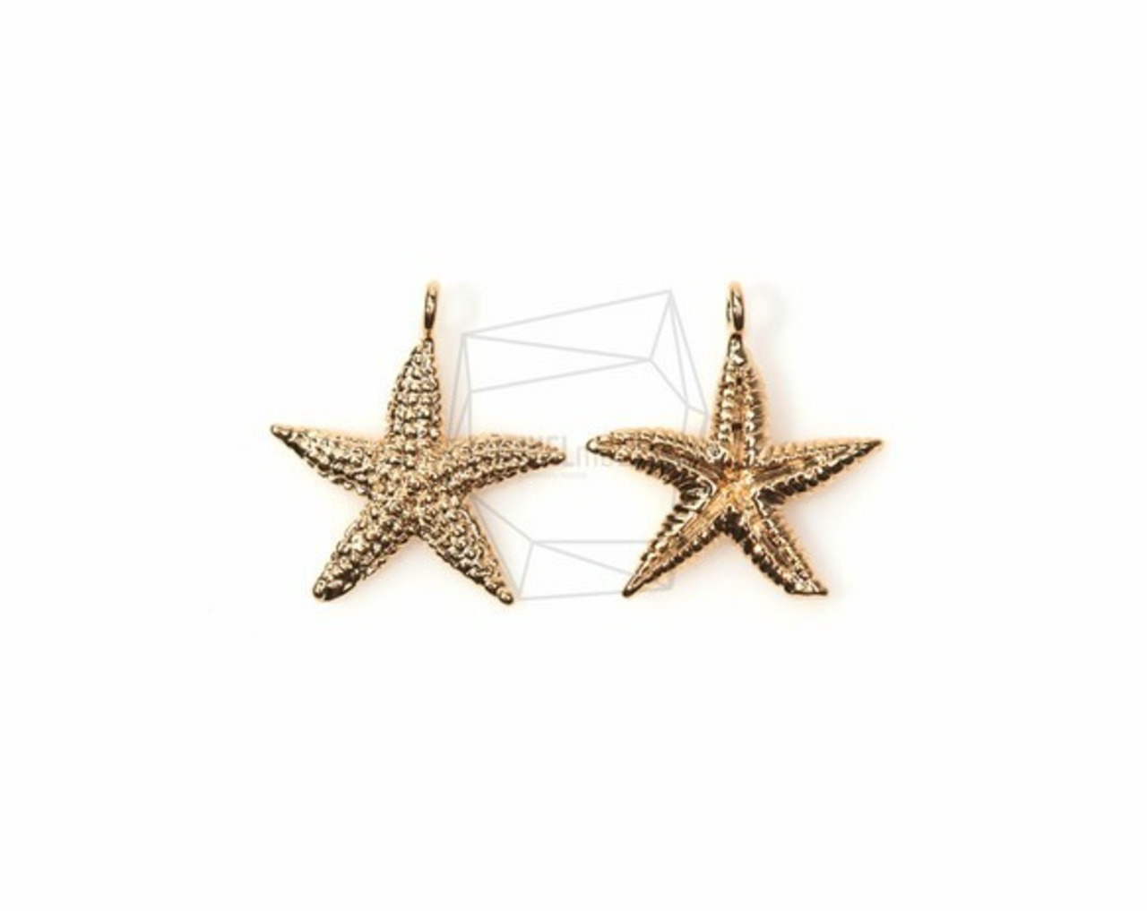 PDT-521-MG/2Pcs- starfish Pendant/ 16mm x 19mm/ Matte Gold Plated Over Brass