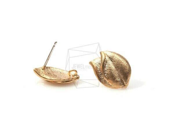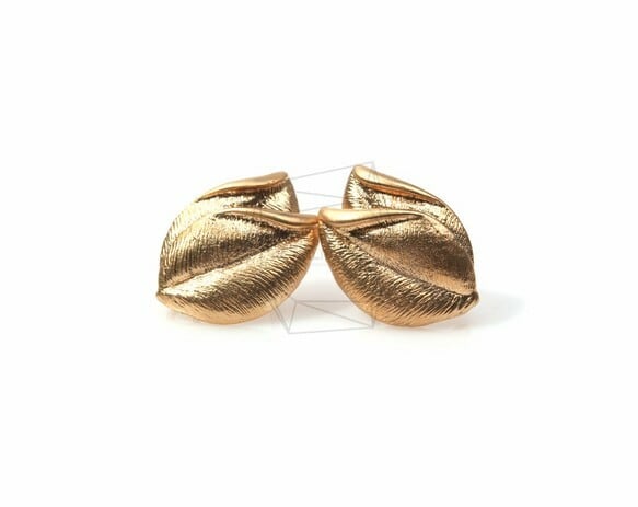 ERG-126-MG/2Pcs-double Leaf Ear post/ 13mm x 15mm /Matte Gold Plated over Brass/925 sterling silver post