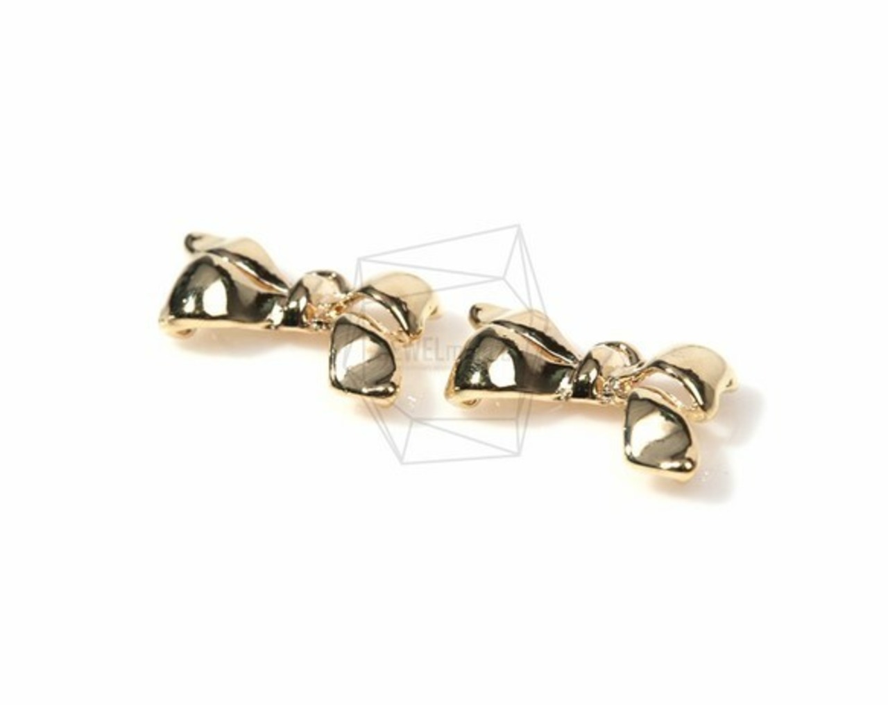 PDT-547-G/2pcs/28mm x 17mm/Plated over Brass/Cute Bow Charm/Tiny Bow Pendant