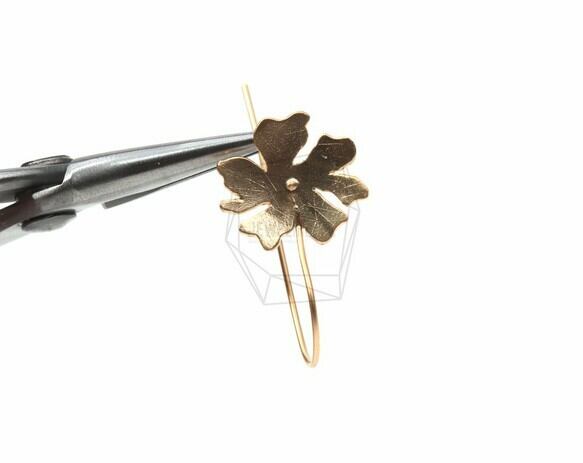 ERG-139-MG/2pcs/Flower Ear Wire/Daisy Flower Earrings/15mm x 28mm/Plated Over Brass