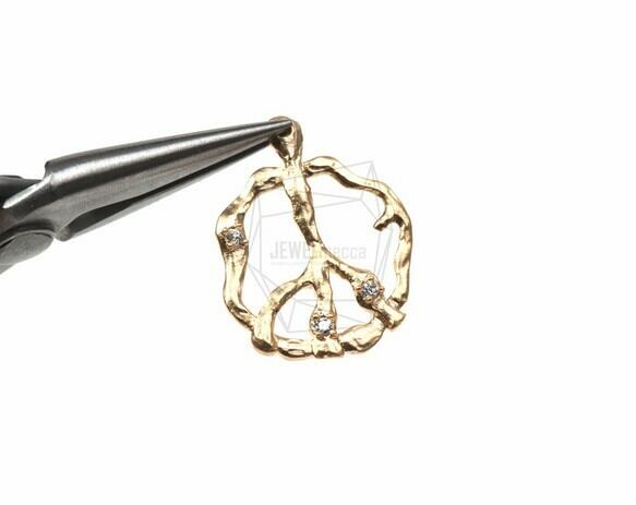 PDT-574-MG/2pcs/Hammered Peace Symbol Charm With CZ/19mm x 25mm/Plated Over Brass