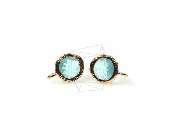 ERG-146-G/2Pcs-Glass Post Earring(Aqua)/ 8mmx10mm /Gold Plated over Brass