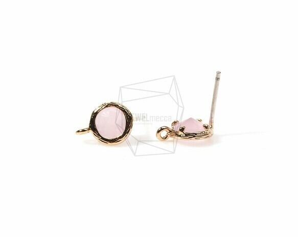 ERG-153-G/2Pcs-Glass Post Earring(Rose)/ 8mmx10mm /Gold Plated over Brass