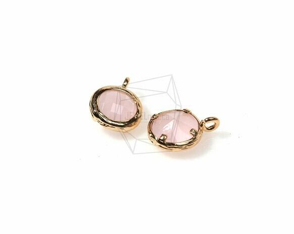 GLA-018-G/2Pcs-Round Framed Stone Charm(Rose)/ 8mmx10mm /Gold Plated over Brass