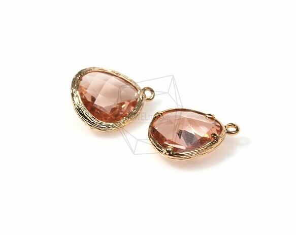 GLA-027-G/2Pcs-Triangle Framed Stone Charm(Champagne)/13mmx15mm /Gold Plated over Brass
