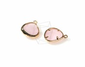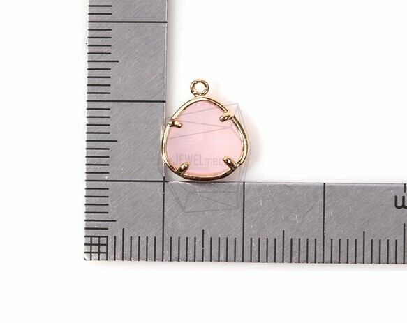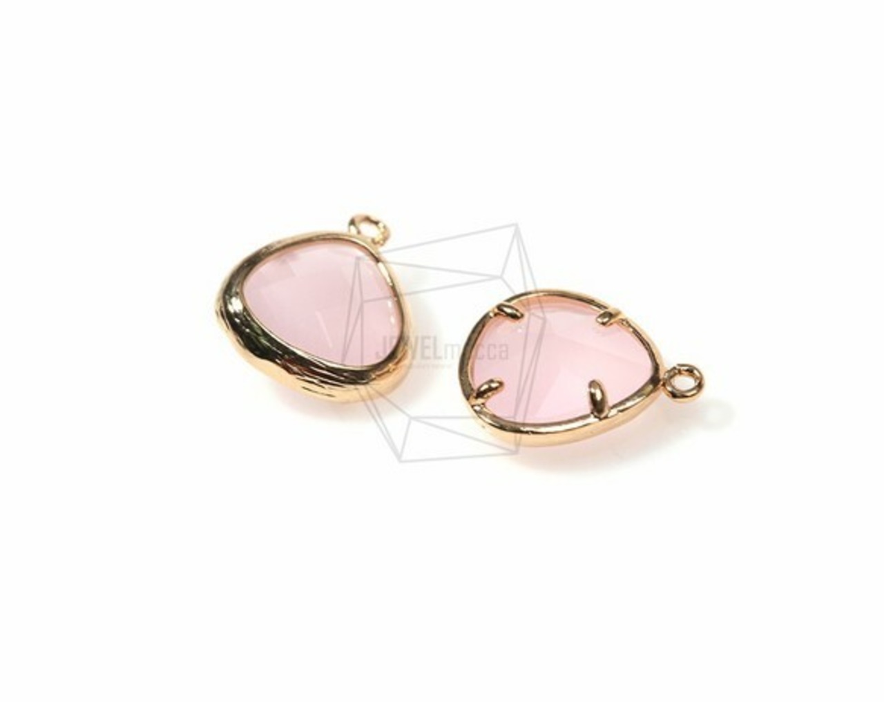 GLA-040-G/2Pcs-Triangle Framed Stone Charm(Rose)/11mmx13mm /Gold Plated over Brass