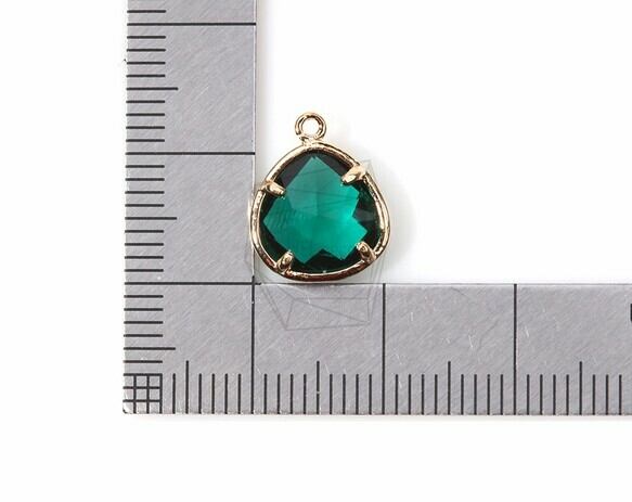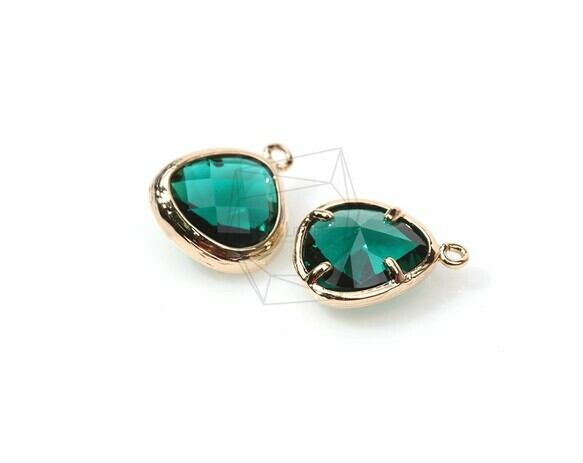 GLA-043-G/2Pcs-Triangle Framed Stone Charm(Emerald)/11mmx13mm /Gold Plated over Brass