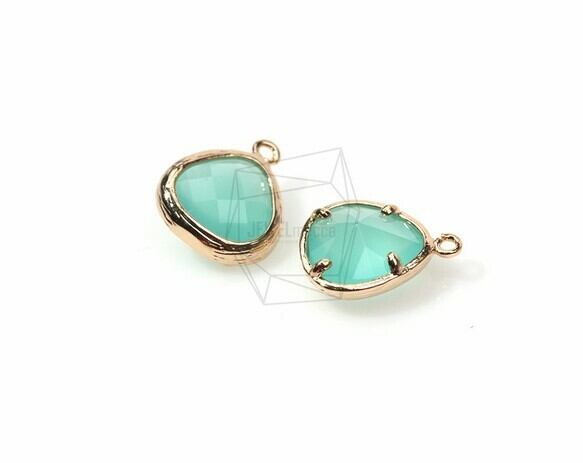 GLA-045-G/2Pcs-Triangle Framed Stone Charm(Mint)/11mmx13mm /Gold Plated over Brass
