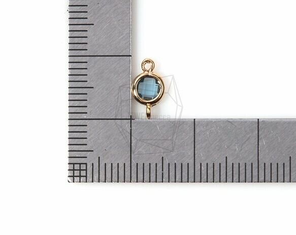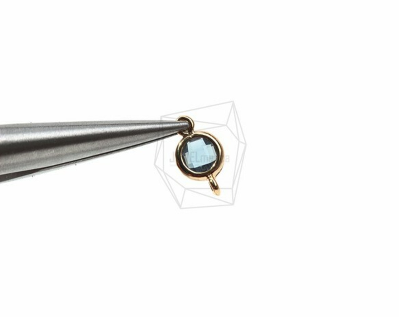 GLA-046-G/2Pcs-Round Framed Stone Connector(Montana)/ 6mmx10mm /Gold Plated over Brass