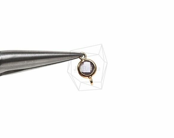 GLA-053-G/2Pcs-Round Framed Stone Connector(Amethyst)/ 6mmx10mm /Gold Plated over Brass