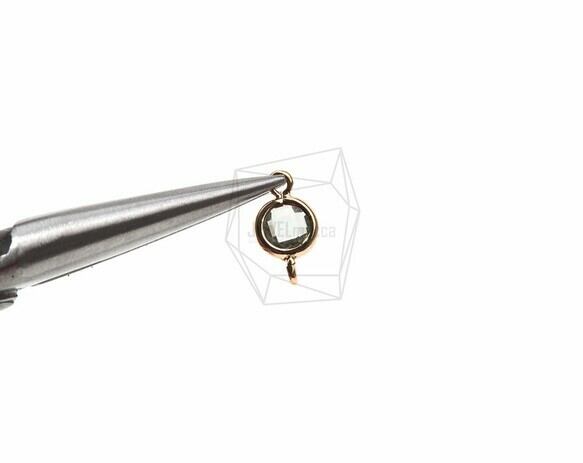 GLA-056-G/2Pcs-Round Framed Stone Connector(Gray)/ 6mmx10mm /Gold Plated over Brass