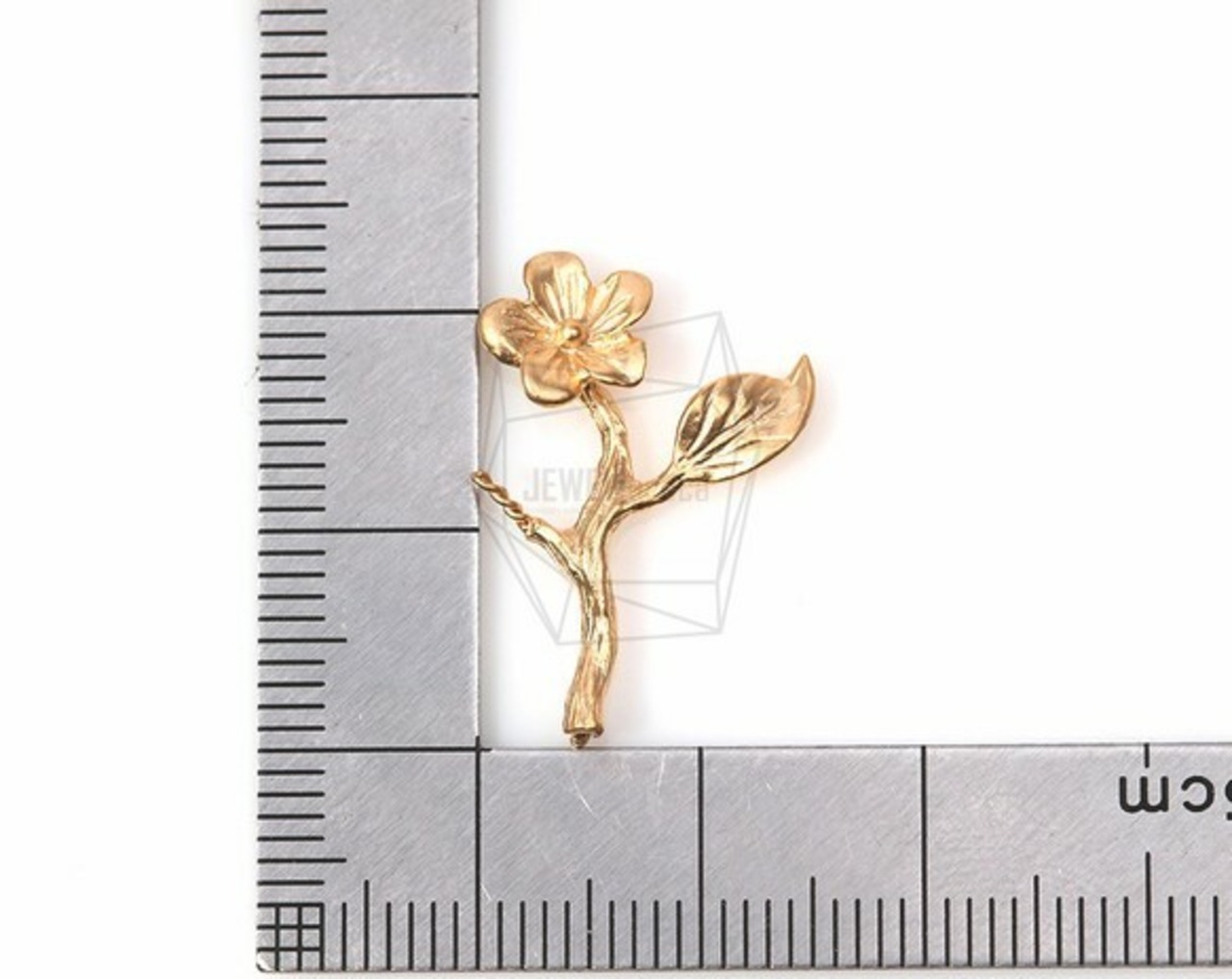 PDT-599-MG/2pcs/Flower Branch Charm/17mm x 23mm/Matt Gold Plated Over Brass